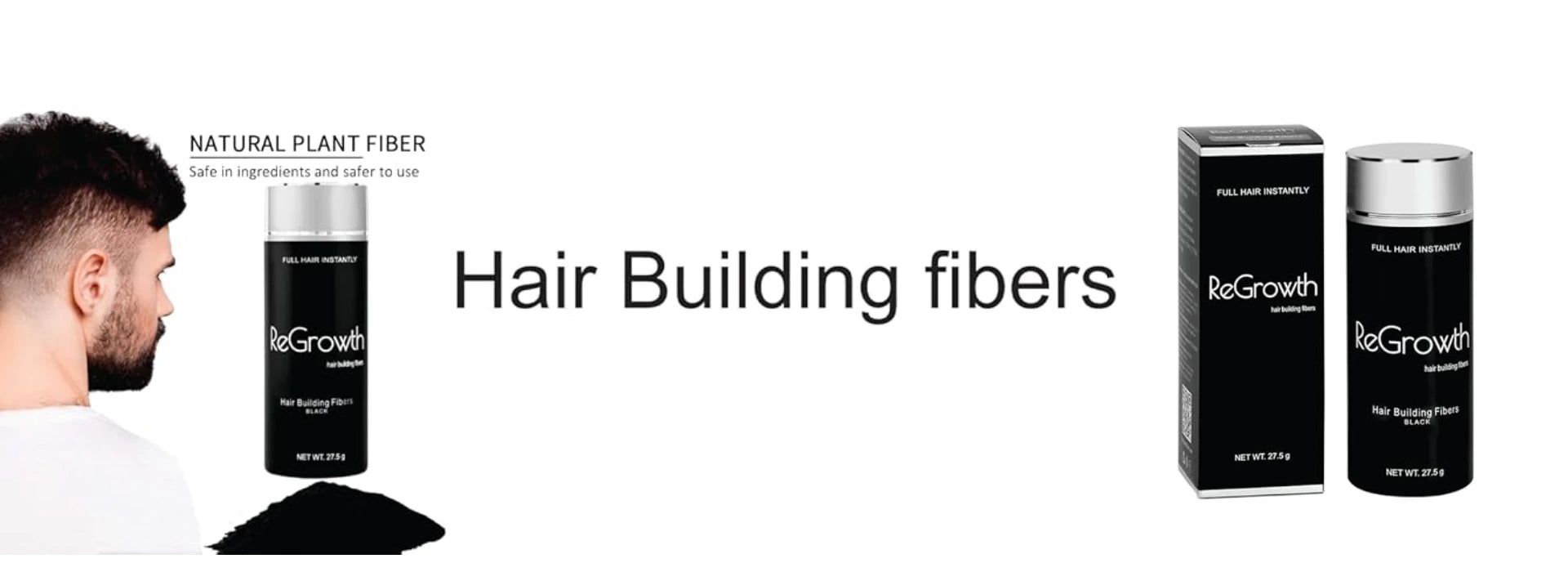 REGROWTH hair Building fibers (Black) 27.5 fiber For Thinning & Bald Spots hair Loss Concealer In Seconds Thickening fibers For Men & Women, 80 Grams