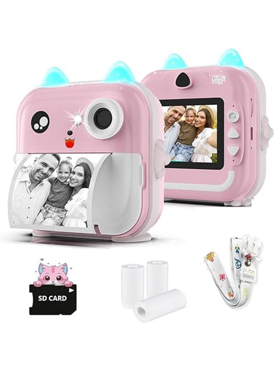 Imported Best Quaity Instant Print Camera For Kids - 1080P HD, 48MP, SD Card, Bluetooth, Free App, 3 Rolls Print Paper, Stickers, Fun Filters, Gift For Boys And Girls - Pink Camera For Kids 4-12 Y (Pink)
