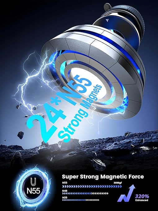 - Strong Magnetic & Strong Suction & Stable Hold:Our car phone holder uses advanced rotating-lock vacuum suction, boosting suction by 50% compared to traditional press-on mountsand, and does not require any adhesive. You no longer have to worry about leaving irremovable marks on your car windshield due to using a suction cup phone holder.This magnetic phone holder equipped with powerful N52 magnets, provide top-level adsorption force up to 2400gf.